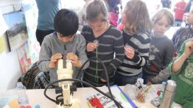 So fanden die Kinder verschiedene Würmer, Larven und Kaulquappen, die sie unter dem Mikroskop genauer betrachten konnten.