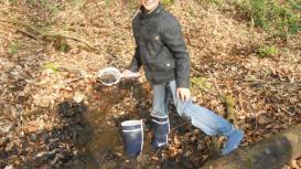 Am 14.04.11 erforschten die Kinder der Klasse 2.1 die Bewohner von Quellen. Bepackt mit allerlei Utensilien gings erst einmal in den Wald. Unter der Anleitung von Frau Baltes, durften die Kinder mit Keschern und Sieben Material aus der Quelle entnehmen.