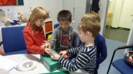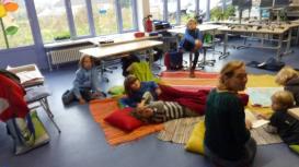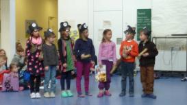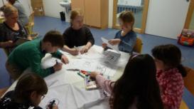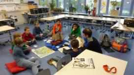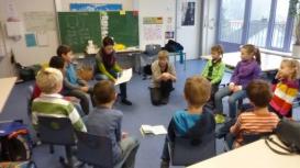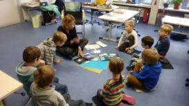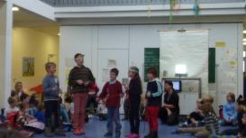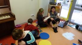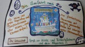 Ich war in der Gruppe „Die Seefahrt nach Rio“. Es war im Musikraum. Als erstes haben wir Kinder gesucht, dann haben wir endlich angefangen. Als wir angefangen haben, hat Frau Jütte uns ein Buch vorgelesen. Zwischendurch haben wir viele Lieder gelernt. Dann haben wir eine Frühstückspause gemacht.
