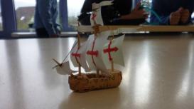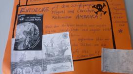 Ich war heute in Frau Lauers Gruppe. Als erstes hat sie uns ein paar Geschichten aus dem Buch „Der Schiffsjunge der Santa Maria" vorgelesen. In diesem Buch ging es um einen Schiffsjungen namens Luis, der seinen Vater vermisst und ihn eine lange Zeit nicht gesehen hat. Danach haben wir auch eine Santa Maria aus Kork, Papier und Zahnstochern gebastelt. Wenn man wollte, durfte man auch noch Ruderboote oder andere Schiffe basteln. Dann sollte man einen Kontinent malen. Ich habe Afrika gemalt. Anschließend hat Frau Lauer uns noch andere Geschichten vorgelesen. Das Rätsel „Das Ei des Kolumbus“ haben wir auch noch gelöst! Dafür haben wir ein Ei gebraucht. Wir sollten versuchen, das Ei auf der Spitze auf einen glatten Untergrund zu stellen. Das hat nicht geklappt! Zum Schluss haben wir das Buch noch fertig vorgelesen bekommen. Nachdem wir alles aufgeräumt haben, haben wir noch einen Mohrenkopf bekommen. Es war sehr interessant.