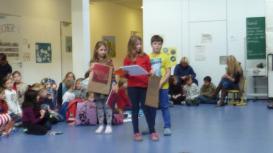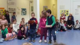 Aber wir haben uns noch in der Aula versammelt und haben Sachen, die gebastelt wurden gezeigt. Wir haben ein Lied vorgeführt. Andere haben auch was über Piraten gezeigt. Danach haben wir geklatscht. Und es war zu Ende. Es war ein super toller Bundesvorlesetag.