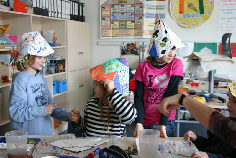 - Kappen & Orden Die Kinder von diesem Projekt basteln viele Sachen. Sie basteln Hüte und bemalen sie mit bunten Farben. Die Hüte werden mit weißer Farbe bemalt, dann müssen sie trocknen. Danach malen die Kinder die Hüte mit bunter Farbe an. Das Projekt macht auch Orden. Die Kinder malen die Orden selbst. Kordeln machen sie auch. Sie drehen drei Wollestücke in entgegengesetzte Richtungen. Aufgeschrieben von Lavinia